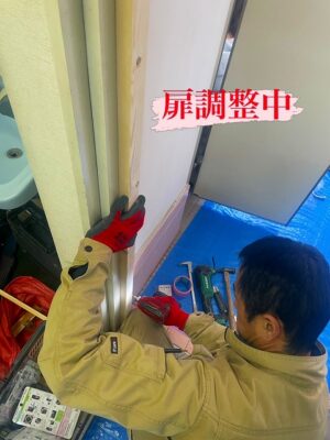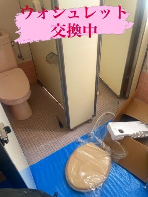 ウォシュレットを新しく交換し、扉の開閉もスムーズに調整中です。