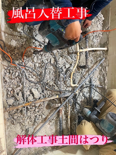 本日は浴室リフォーム工事の一コマ。まずは既存のお風呂の解体作業からスタート🛁