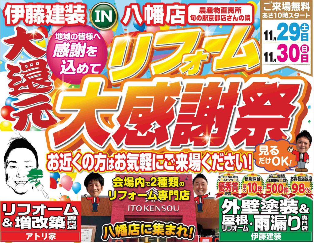 11月29日(土)・30日(日)の2日間、八幡店にて