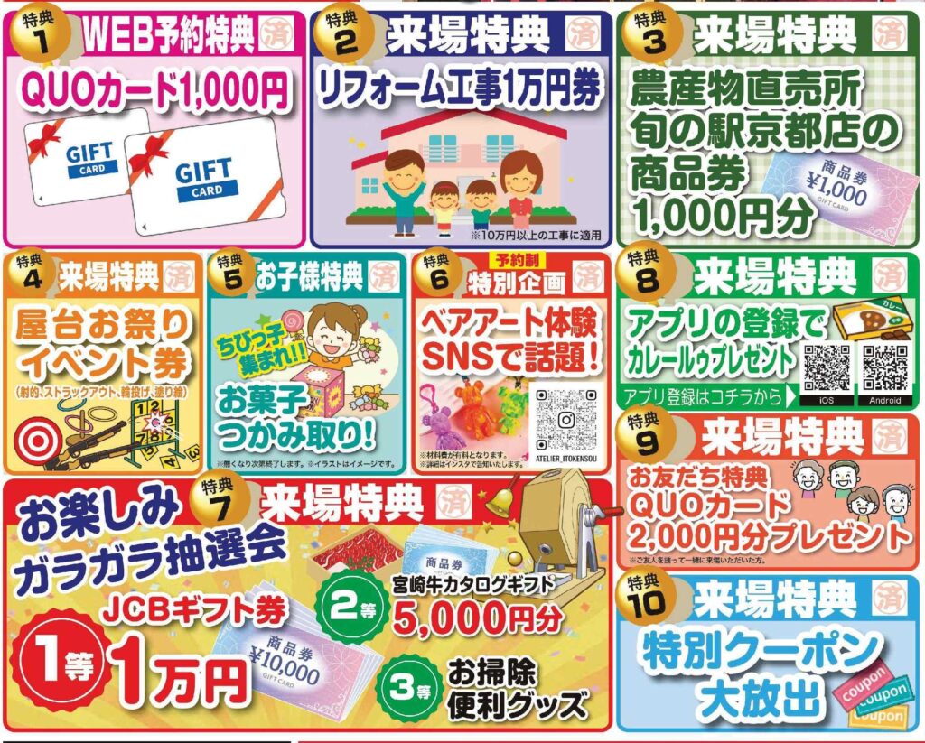 来場特典や2日間限定特価商品など多数ご用意しております。