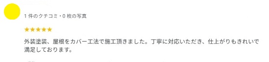 外装塗装、屋根をカバー工法で施工頂きました。丁寧に対応いただき、仕上がりもきれいで満足しております。