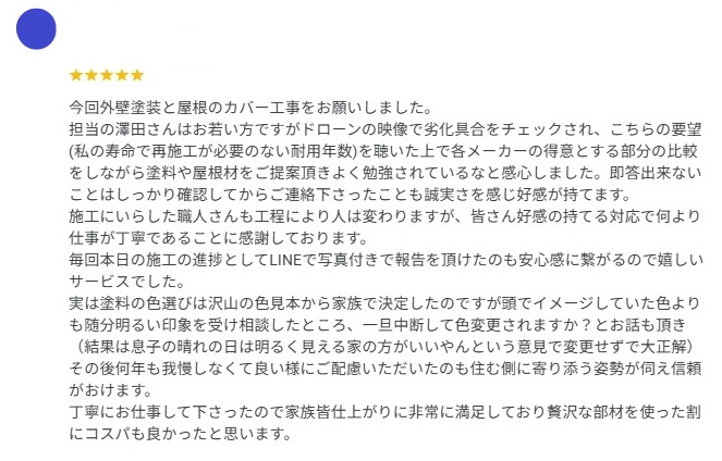この度は改めまして、伊藤建装に大切なお住まいの外装リフォームをお任せいただきありがとうございました。