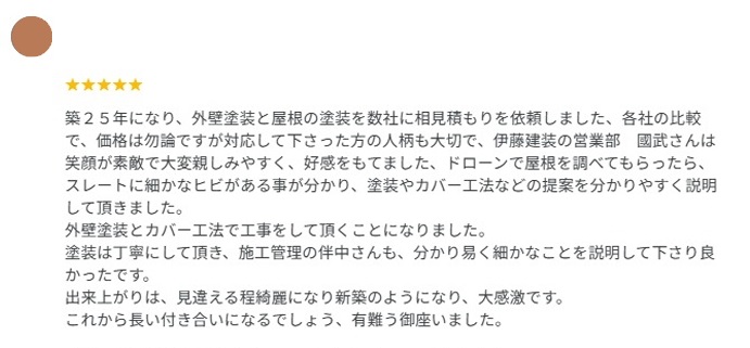 塗装は丁寧にして頂き、施工管理の伴中さんも、分かり易く細かなことを説明して下さり良かったです。