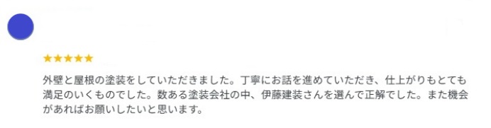 数ある塗装会社の中、伊藤建装さんを選んで正解でした。また機会があればお願いしたいと思います。