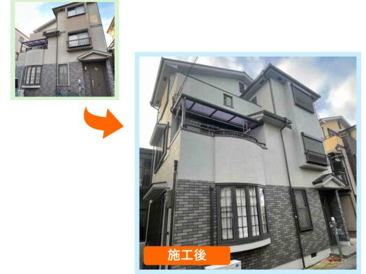 外壁はもちろんのこと、雨樋や破風板、軒天などの細かい付帯部まで丁寧に仕上げることで、建物全体がぐっと引き締まり、統一感のある美しい外観へと生まれ変わりました。