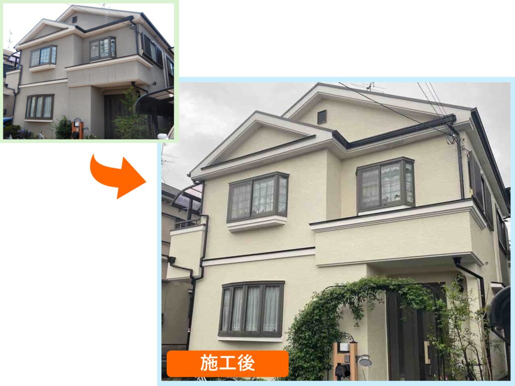 お住まいの状態や塗装後のイメージをしっかり共有し、工事中も進捗状況をご報告しながら進めたことで、完成後には「想像以上の仕上がり」とのお言葉をいただくことができ、スタッフ一同大変嬉しく思っております。