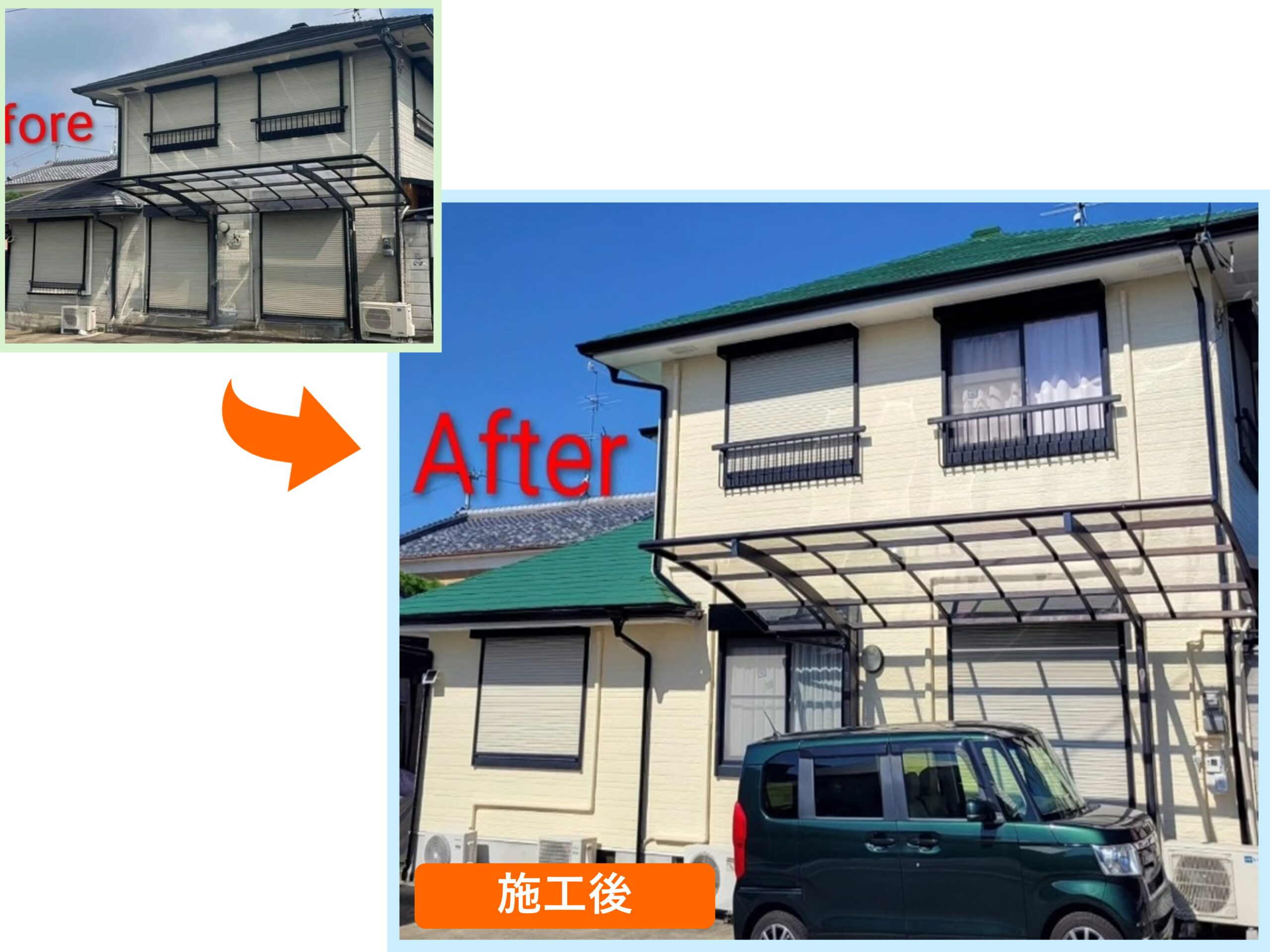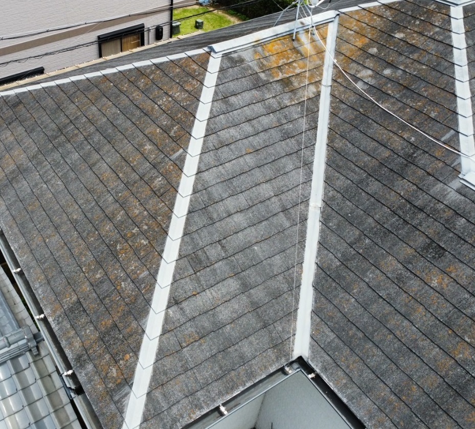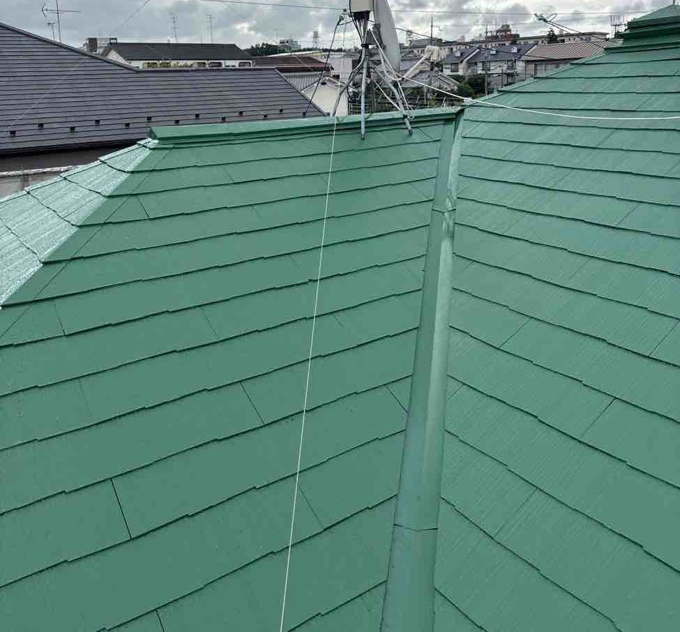 一般的な屋根色とは一味違う、明るく清潔感のある仕上がりで、建物全体の印象をぐっと引き上げるアクセントとなりました。